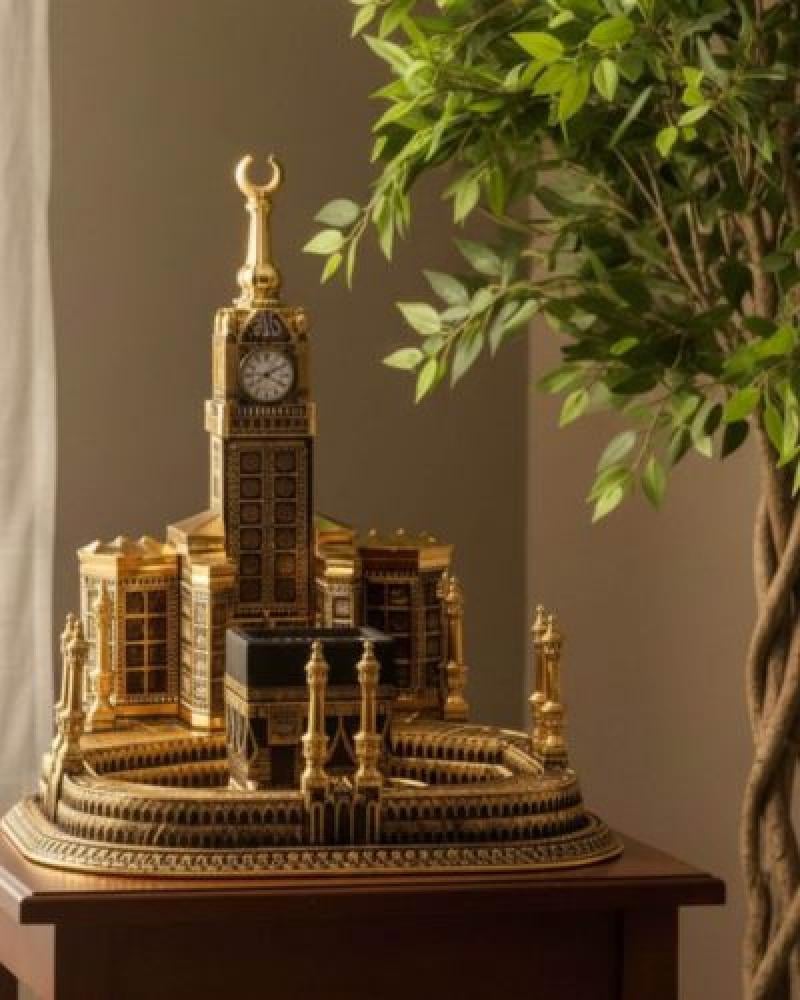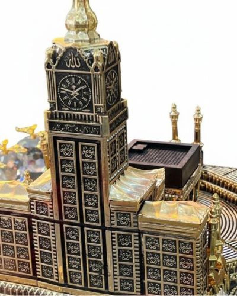 مجسم للحرم المكي مع ابراج الساعه ومزين بالأسماء الحسنى وبالزخارف الاسلامية .
